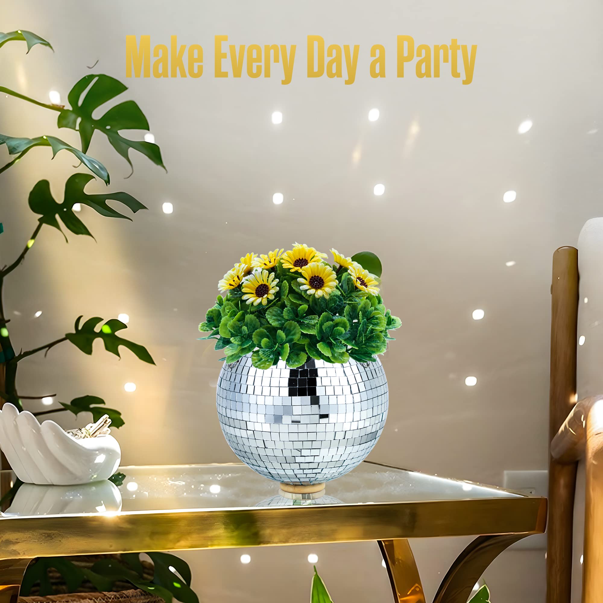 Amazon Com Disco Ball Planter Hanging Indoor Home Plant Decor 6 Inch Mirror Disco Balls Indoor Planter Fun Planter Hanging Planter Lightweight Macrame Chain And Rope Hanger With Hook 70s Funky Home Decor